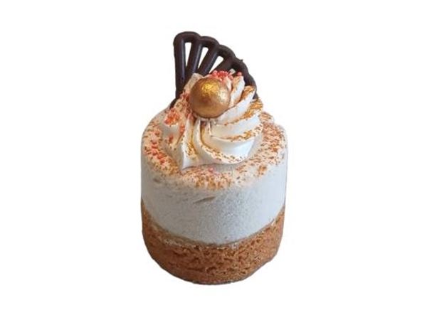 Amandelslofje met stoofperen kaneel bavaroise afgetopt met toefje botercreme
